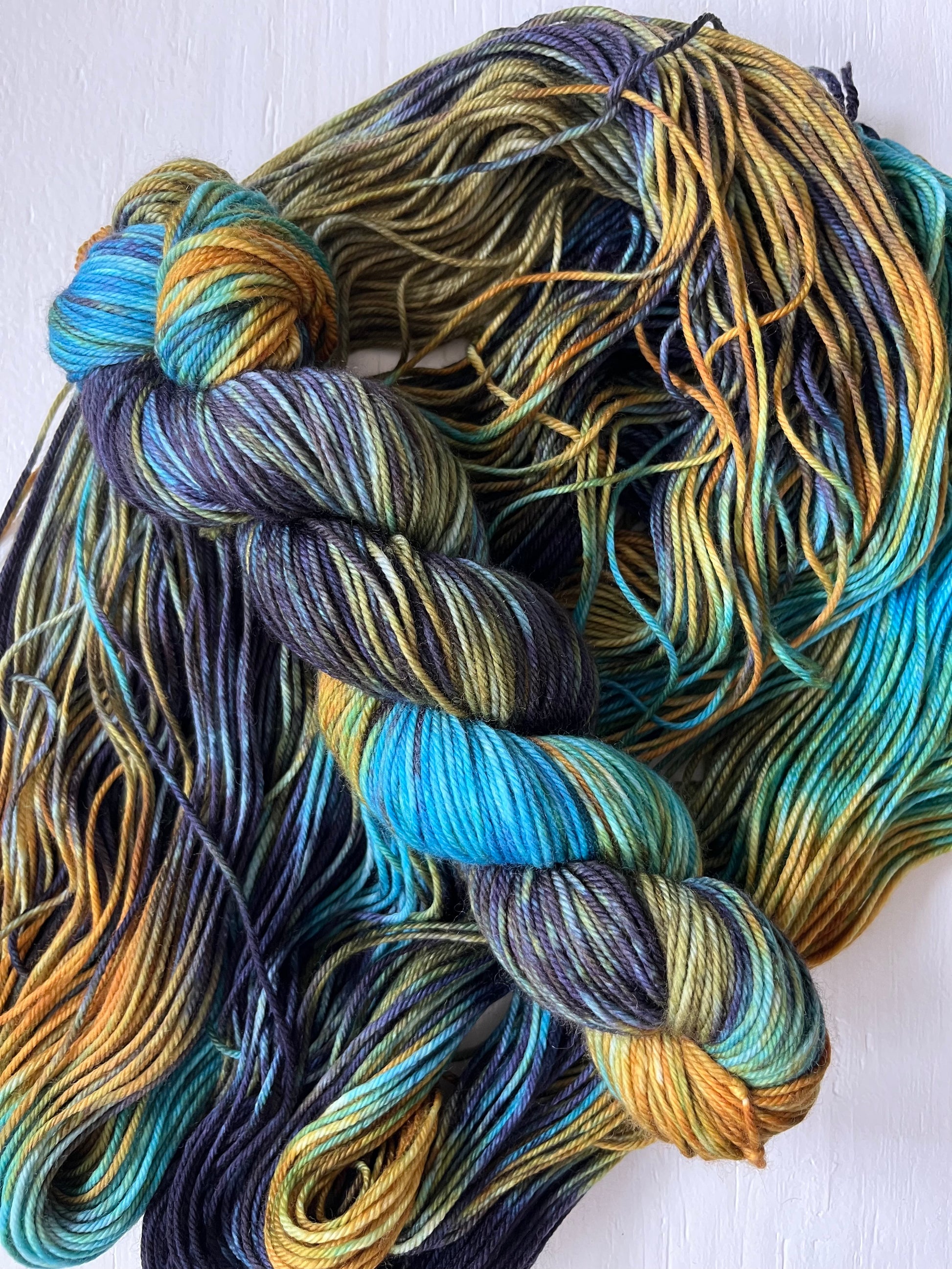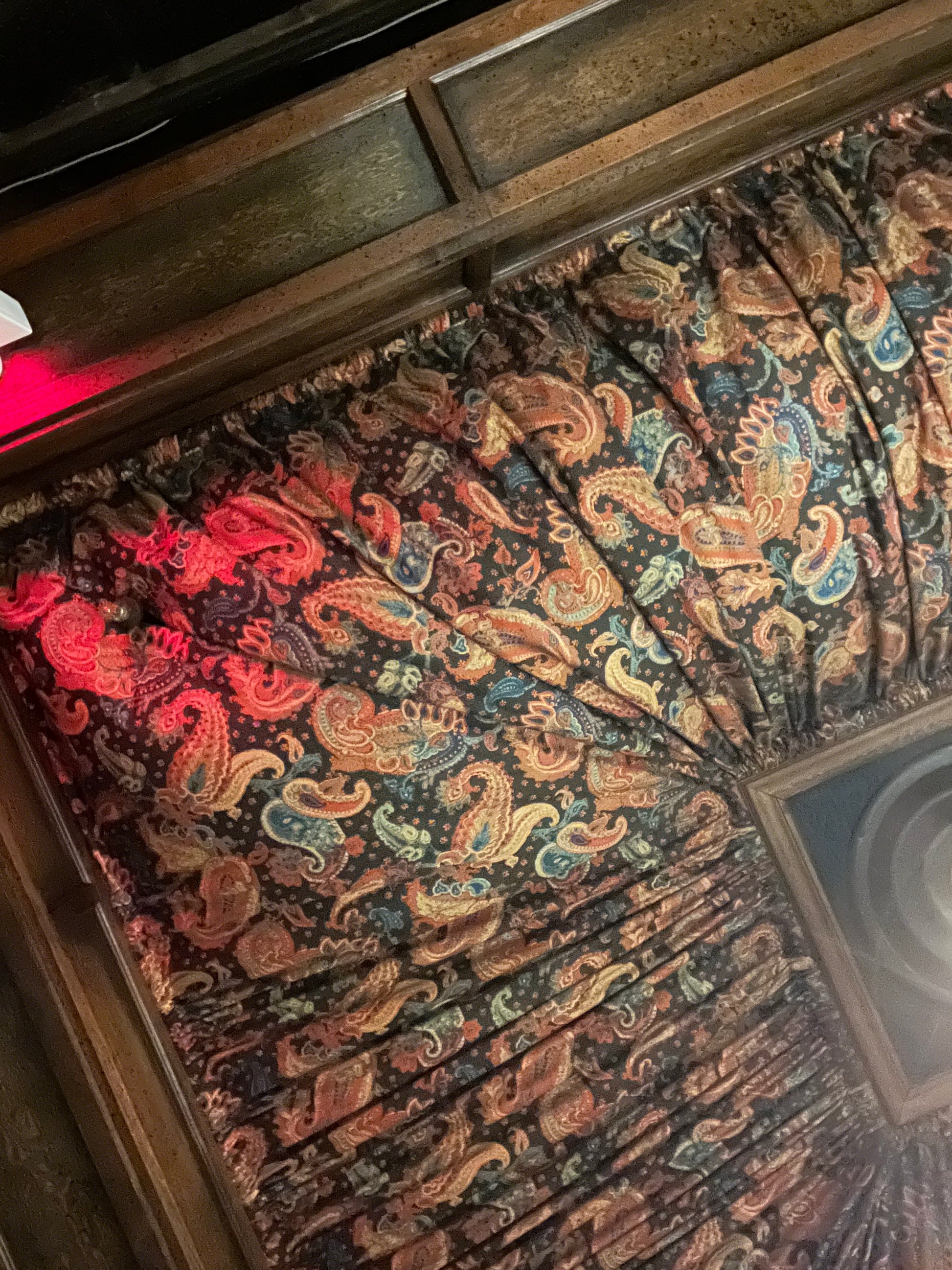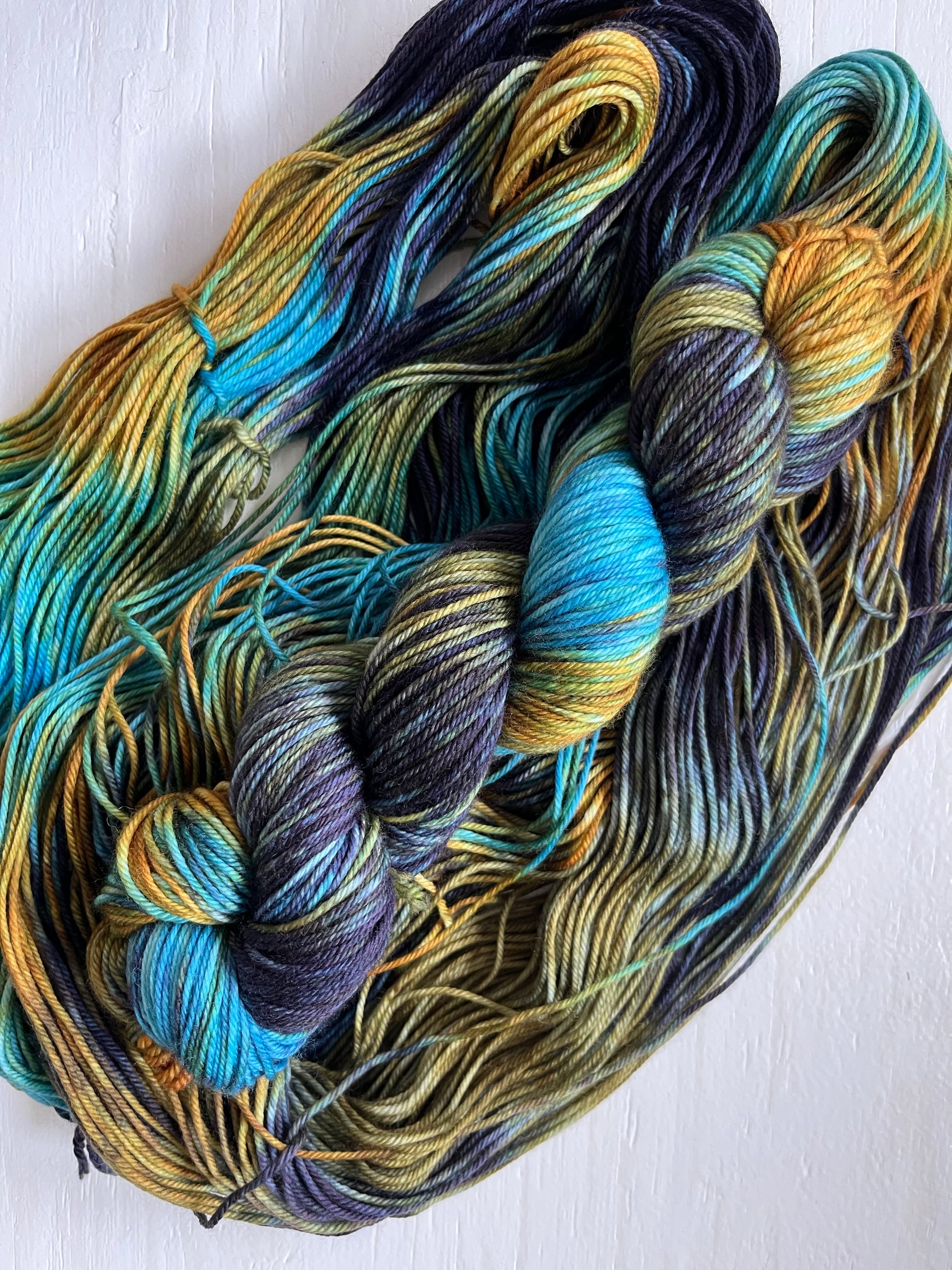 While we were in Nelson we made a stop for cocktails at a lovely bar called The Library. It was the exact vibe we were looking for. Quiet with mood lighting and live music. We had a great time. This colorway was inspired by the ceiling in the library. It was draped with this gorgeous fabric that I couldn't stop staring at!