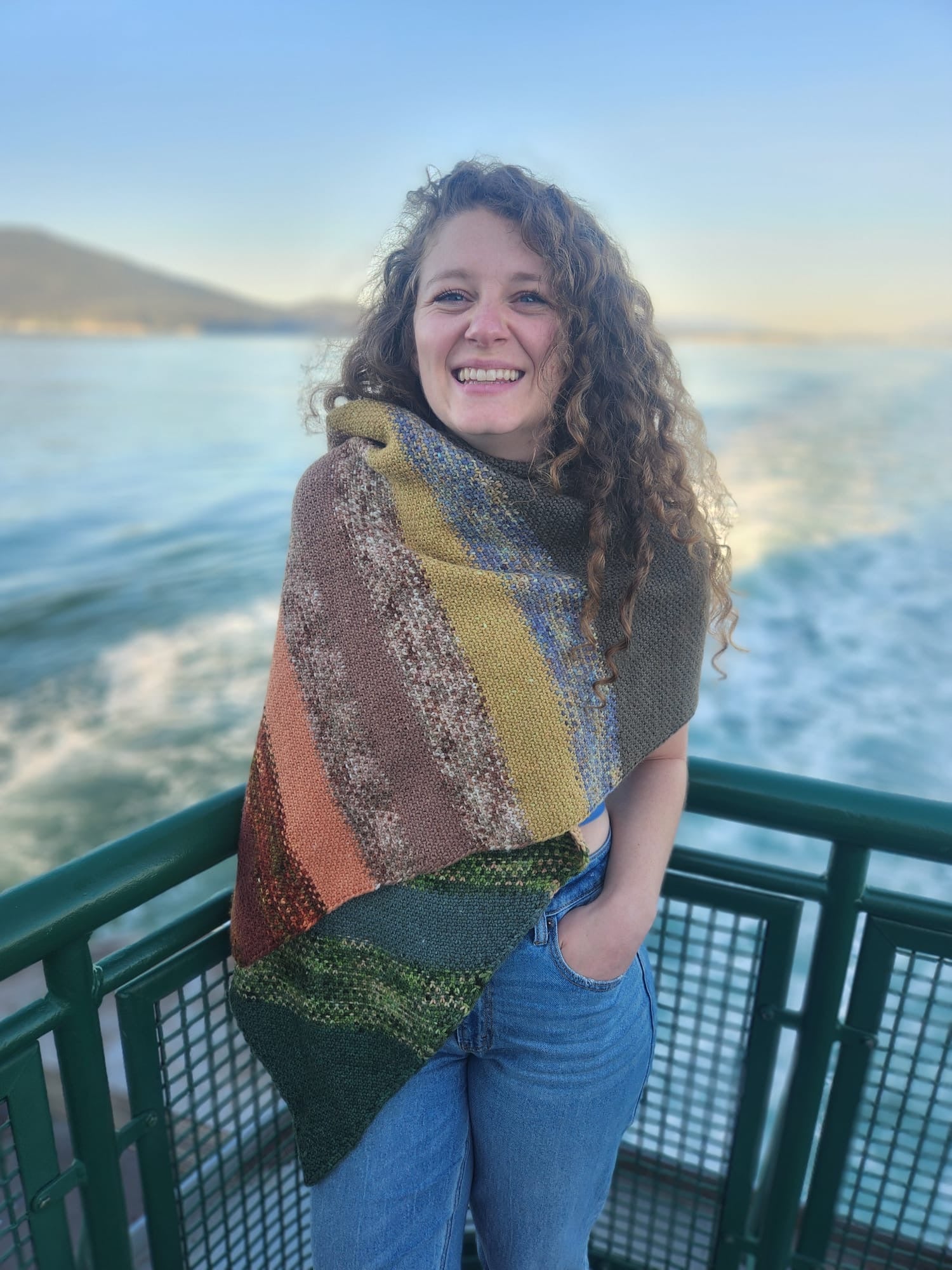 The shawl starts with just three stitches, but expands to cover the shoulders nicely. It is then worked flat until it is decreased back down to three stitches. The pattern would be great for anyone wanting to try linen stitch for the first time! There are helpful pictures in the pattern along with written instructions and charts.